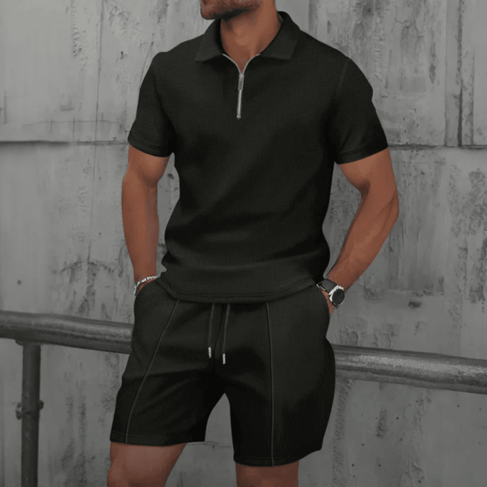 This co-ord set transitions seamlessly from laid-back to smart-casual. Pair the polo shirt with the drawstring shorts for a beach-ready look, or layer it with a light jacket for a night out. The versatility of this men’s fashion essential means you can style it with trainers, sandals, or even loafers for diverse occasions.